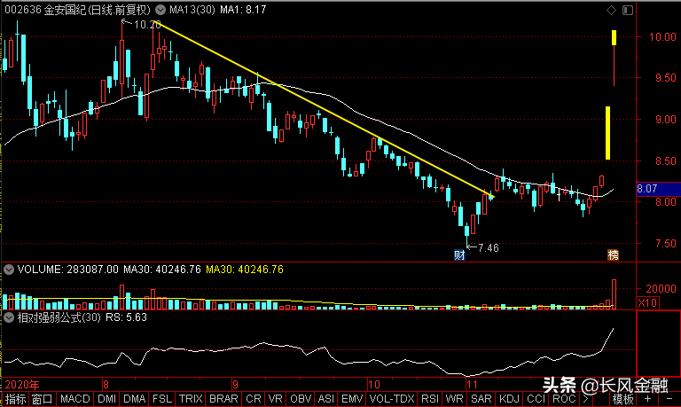 华微电子,在底部震荡之后,拉大阳线,目前价格已经突破了下降趋势线,同时成交量相比之前,放大明显。