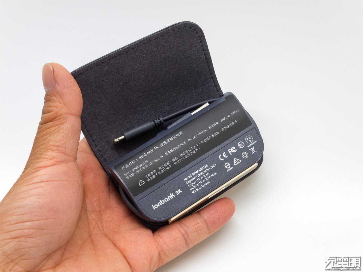 IonBank3K便携式移动电源,一个重要的特点就是自带数据线,在收纳区给线束设计了卡槽,归位后不会出现由松散而影响用户体验情况。