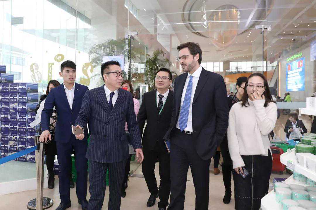 在徐建成董事长、李仙霖总裁等集团高管的陪同下,亚历山大总裁、莹特丽科技市场总监张佳音女士先后参观绿叶中心店、企业文化厅、产品展示厅和员工办公区等处。