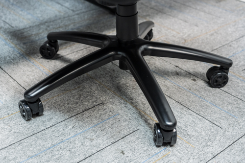 底部的五星脚同样采用了钢制,承重能力要比不少电竞椅上的尼龙材质好太多,滚轮部分还采用了PU包边,看起来更精致的同时移动起来还很安静,并且不会伤到地板。