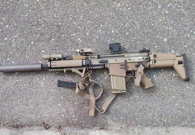主要模块包括一个有上下左右四段M1913标准导轨的RIS护木、缩短的快卸M203榴弹发射器及其瞄准具、一个KAC快速装配消音器、KAC后备照门、一支战术灯、一个AN/PEQ-2可见光/红外激光指示器,还有ACOG和反射式瞄准镜以及一个夜视瞄准镜等瞄具系统。