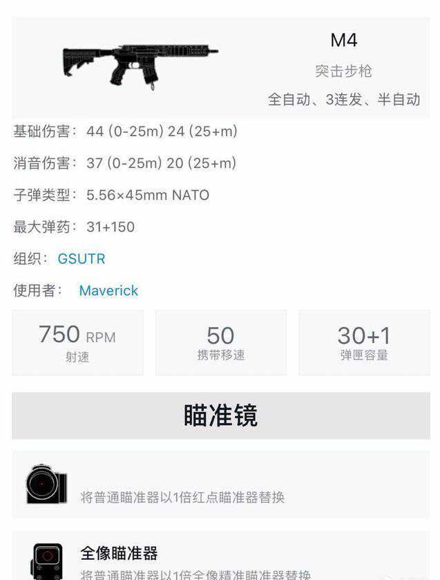 枪支参数全称:M4A1突击步枪