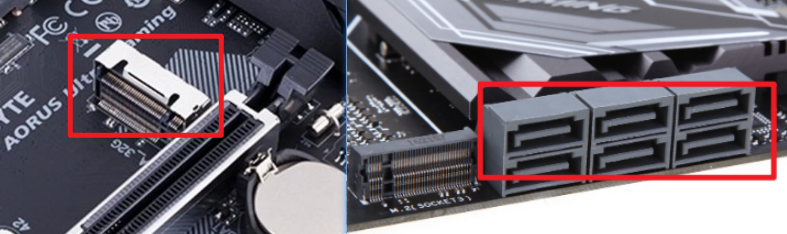现在大多数的主板,都会有两种硬盘接口,一种是,另一种是SATA。(接口多以固态硬盘为主,SATA接口多以机械硬盘为主)