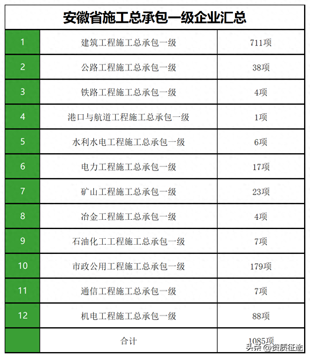 安徽省作为中国经济的重要省份之一,近年来在基础设施建设方面取得了显著成就。这一成就的背后,离不开众多施工总承包一级企业的辛勤付出和卓越贡献。本文将对安徽省施工总承包一级企业进行汇总,目前拥有施工总承包一级资质达1085项,并分析其在各个领域的发展情况。