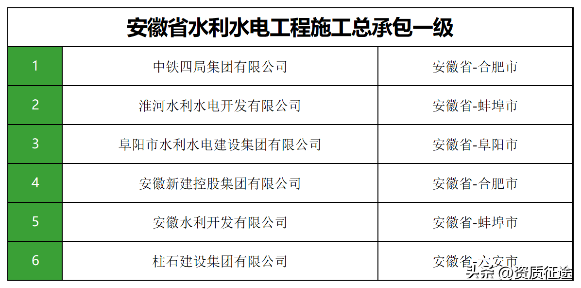 安徽省水利水电工程施工总承包一级企业数量为6家。这些企业在水利水电工程建设中发挥着关键作用。他们承建了水库、水电站、堤防等工程,为安徽省的水利事业发展和电力供应做出了贡献。
