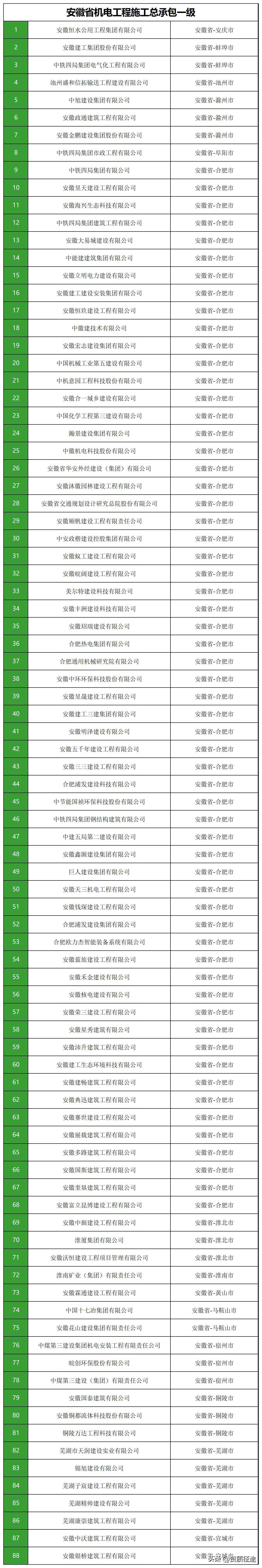 安徽省机电工程施工总承包一级企业共有88家。这些企业在机电工程建设和运营中发挥着关键作用。这些企业主要负责机电设备的安装、调试和维护。它们拥有专业的技术团队和先进的设备,能够为各种工程项目提供优质的机电工程服务。