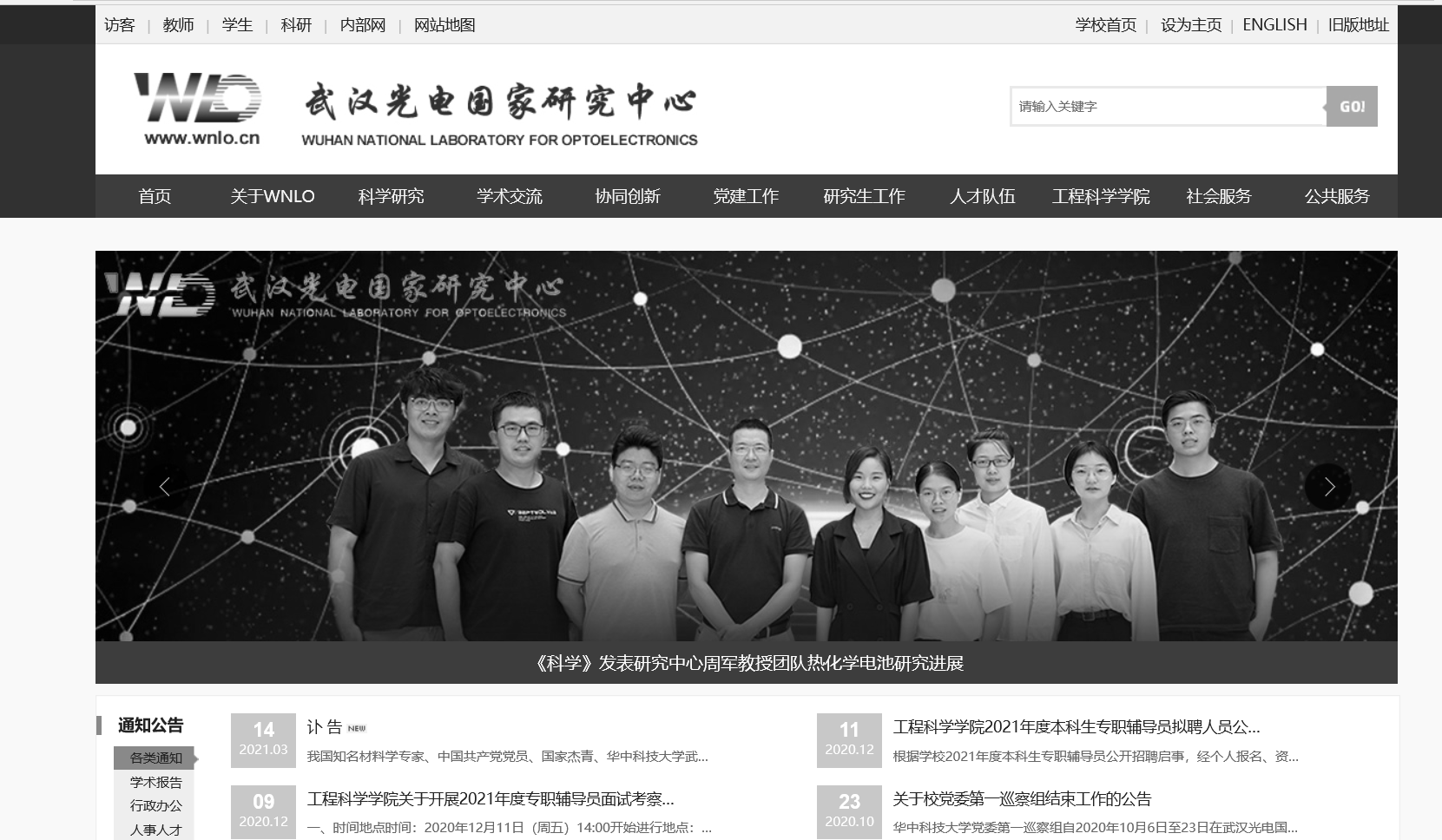 今日,记者在该校武汉光电国家研究中心的官方网站看到,网站界面已换为黑白。