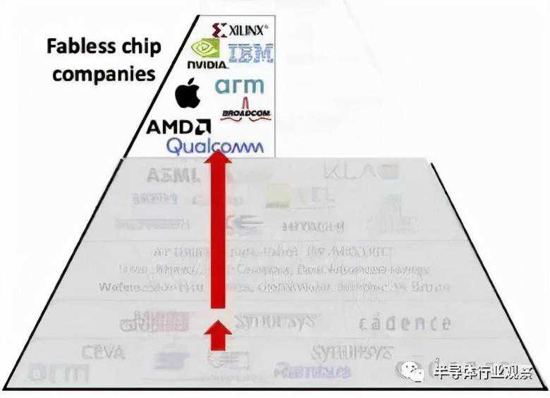 如果能够查看代表半导体行业的简单三角形内部,而不是一家制造芯片的公司,你会发现这是一个拥有数百家公司的行业,所有公司都相互依赖。总体而言,它非常庞大,所以让我们一次描述生态系统的一部分。(这是一个非常复杂的行业的简化视图。)