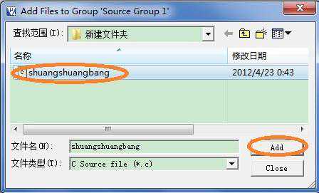 6.在弹出的对话框中选中刚才保存的“”文件并单击【Add】,再单击【Close】,如图: