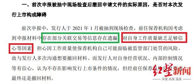 国泰君安和恒兴科技称,前任保荐机构(东吴证券)因考虑到申报材料中部分关联交易等信息存在遗漏、对自身工作质量缺乏足够信心等因素,担心因工作质量使保荐机构自己可能面临被监管部门处罚的风险,故与恒兴科技多次沟通想要撤回材料。而恒兴科技对自身经营状况、内部控制情况等有信心,认为不存在影响发行上市条件的情况,但经前任保荐机构反复要求,最终还是撤回材料。