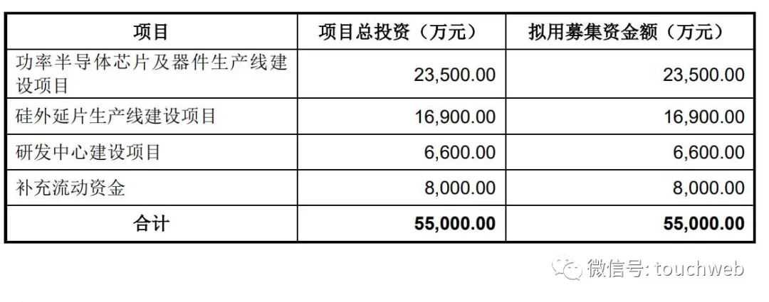其中,2.35亿用于功率半导体芯片及器件生产线建设,1.69亿元用于硅外延片生产线建设项目,6600万元用于研发中心建设,8000万用于补充流动资金。