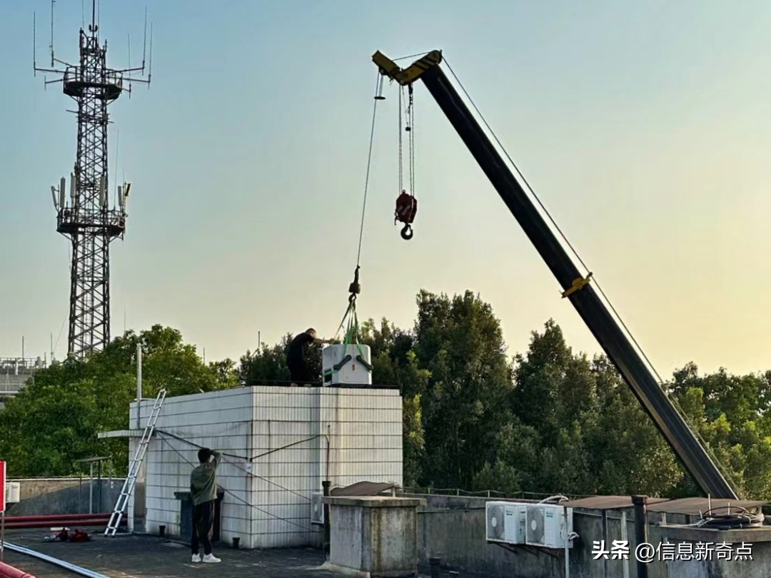 因无人机为精细设备,配送和运输过程中如遇到较大的撞击会造成机体损坏及数据等报错,安装过程需特别注意避免颠簸造成损坏,且设备安装在花果山楼顶,山路崎岖,山中绿化数目较多,需严格落实相关安全、用电、维护等事项要求。经过现场模拟等方式,工作人员最终通过使用吊机作业的形式部署,最大限度地保障施工安全与施工质量。