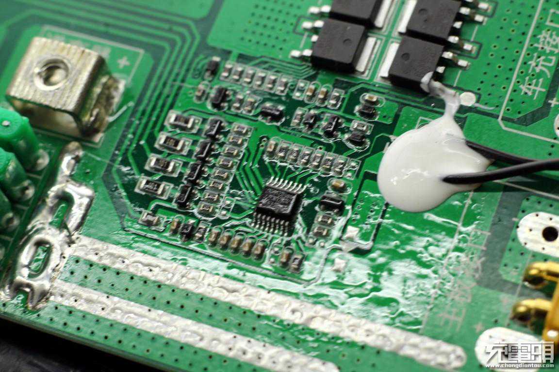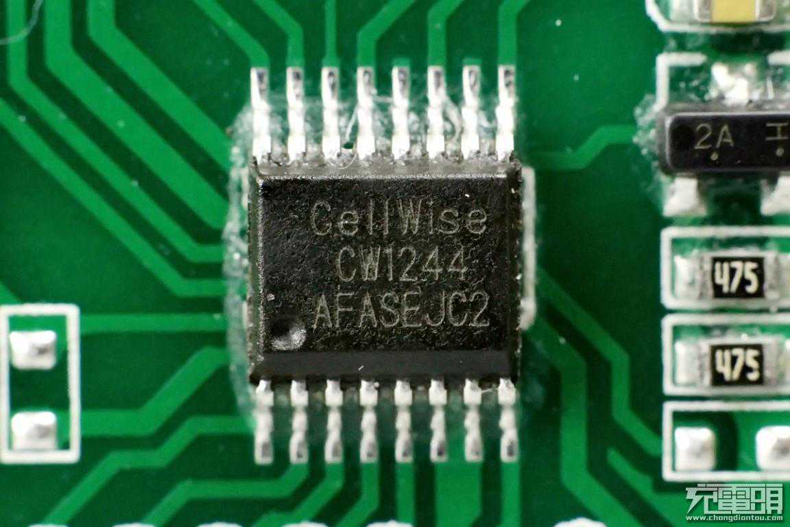 清理掉三防漆,左侧为充电均衡电路,电池组保护芯片采用赛微CW1244。
