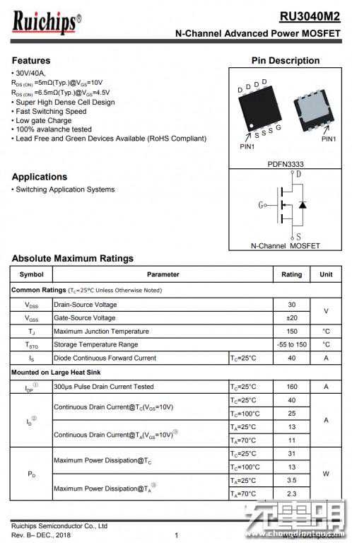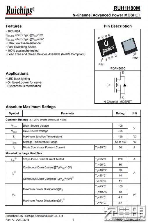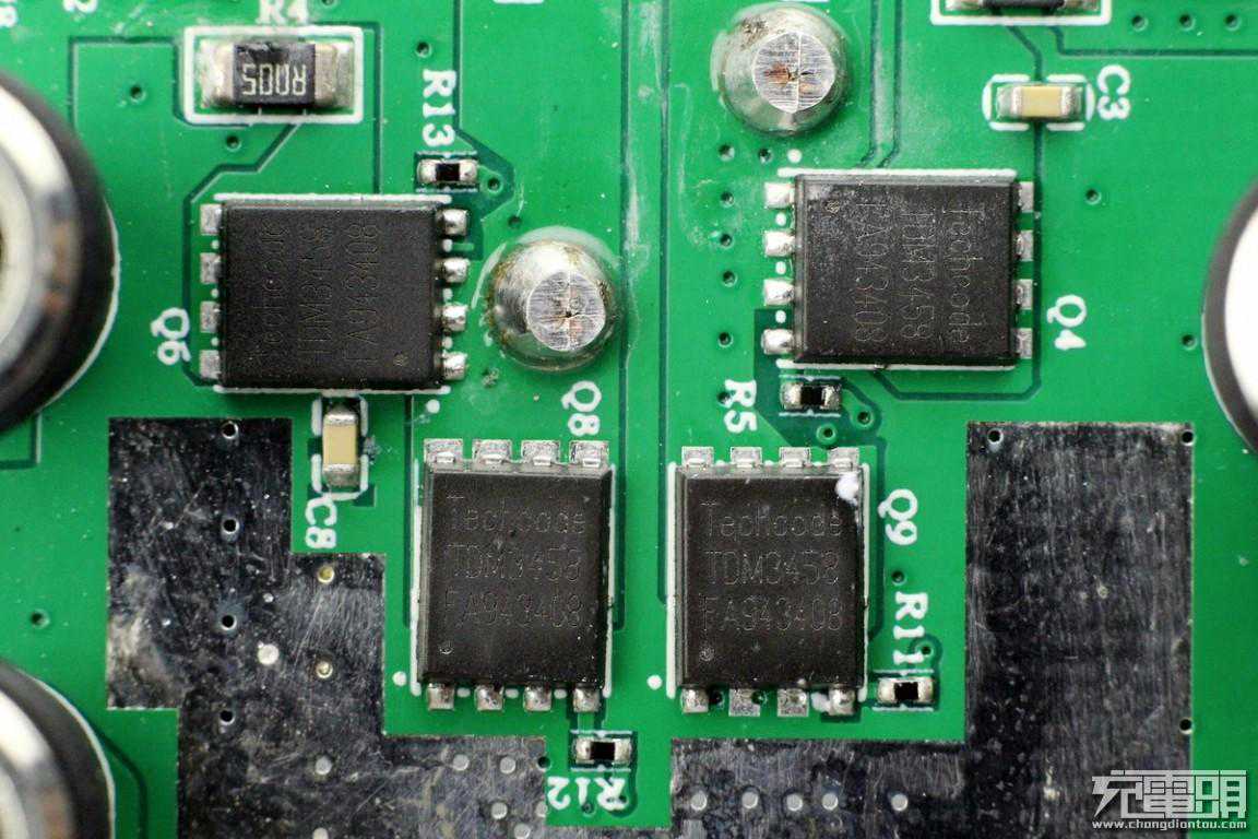 同步整流管采用锐骏RUH1H80M,耐压100V,导阻6mΩ,适用于同步整流。