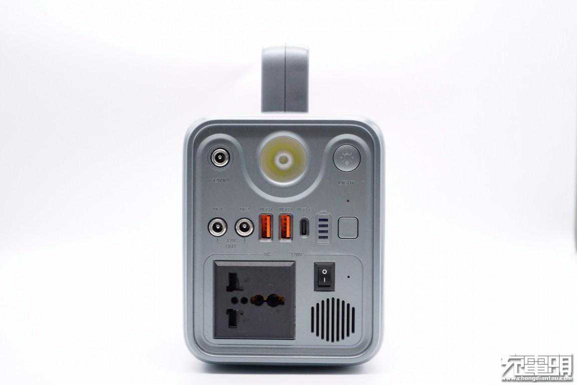 储能电源输出面背面,有照明灯,输出口和AC输出插座。