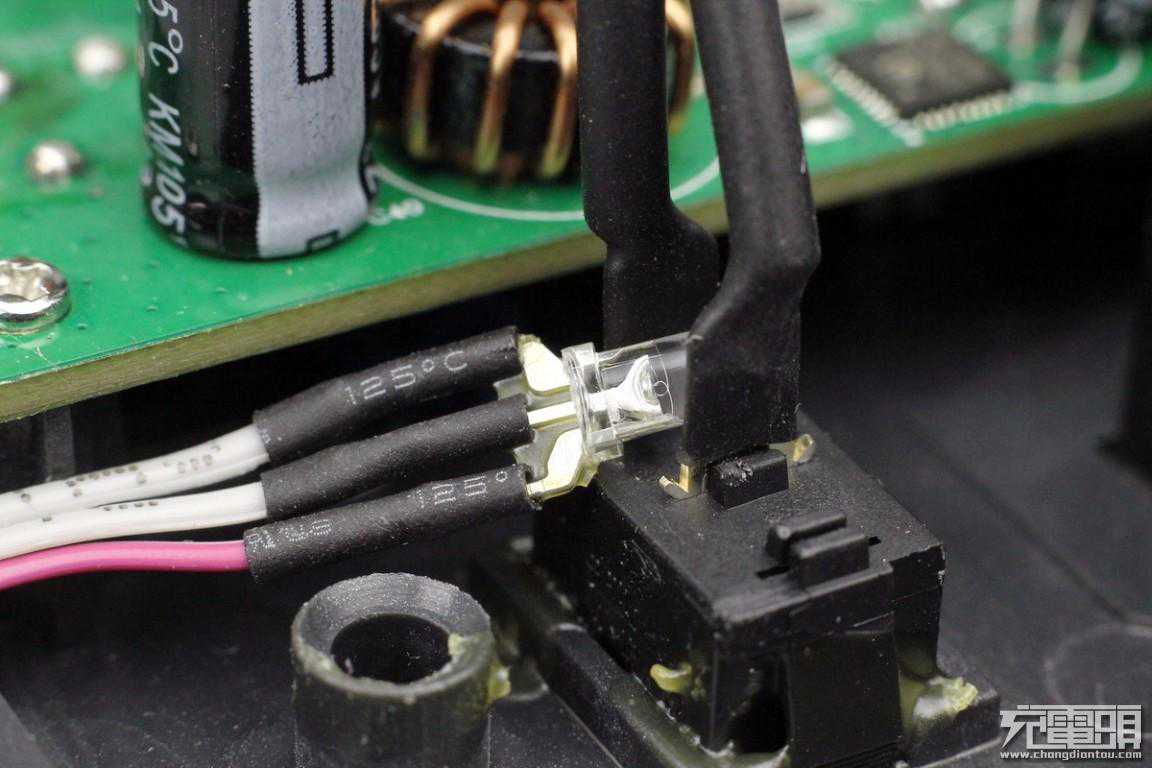 拆下输出端电路板,照明LED灯,电路板上还有电量指示灯。