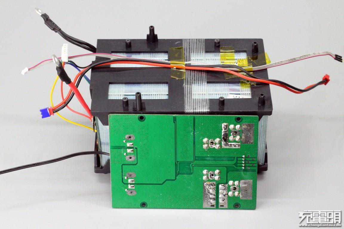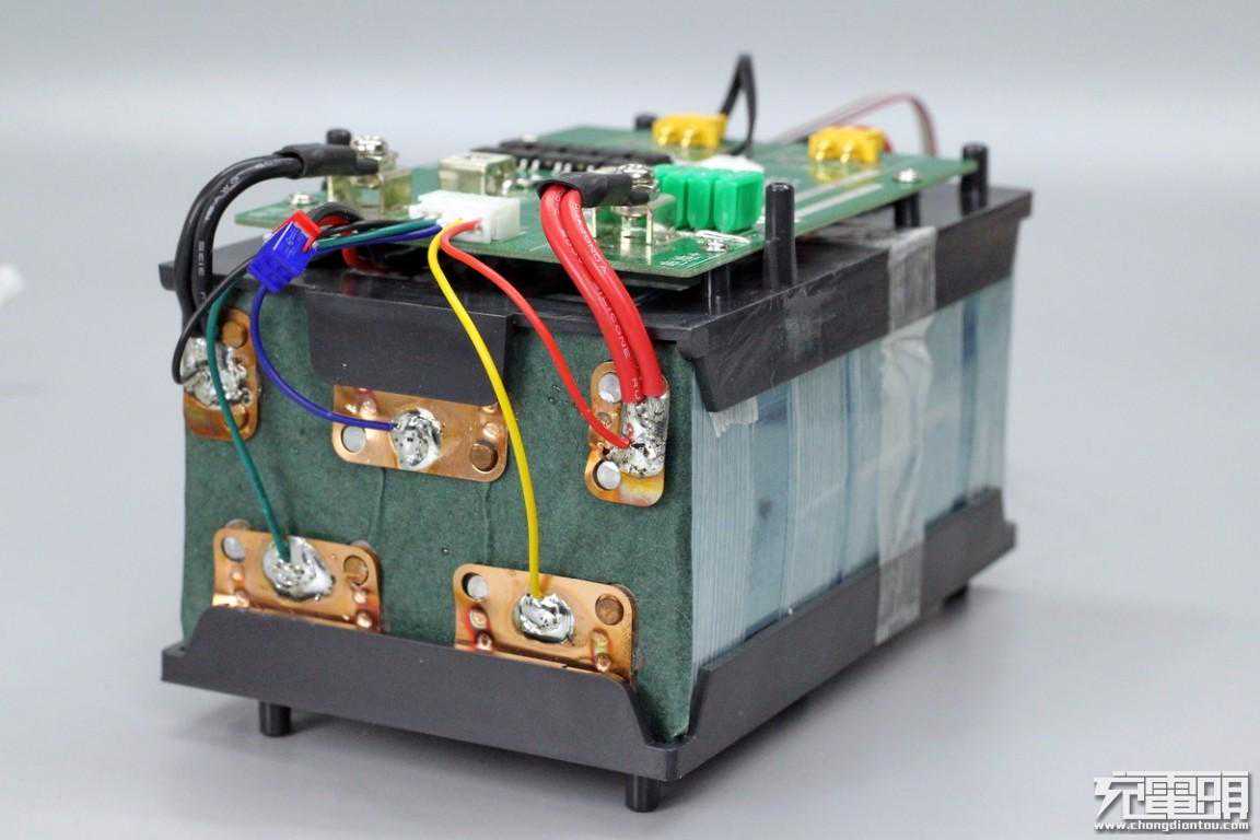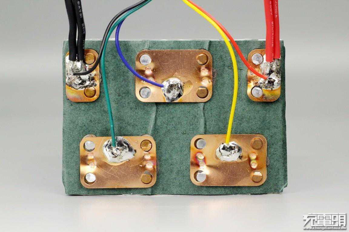 电池正负极采用铜片点焊连接并焊接导线,电力输出和单体电池电压检测。