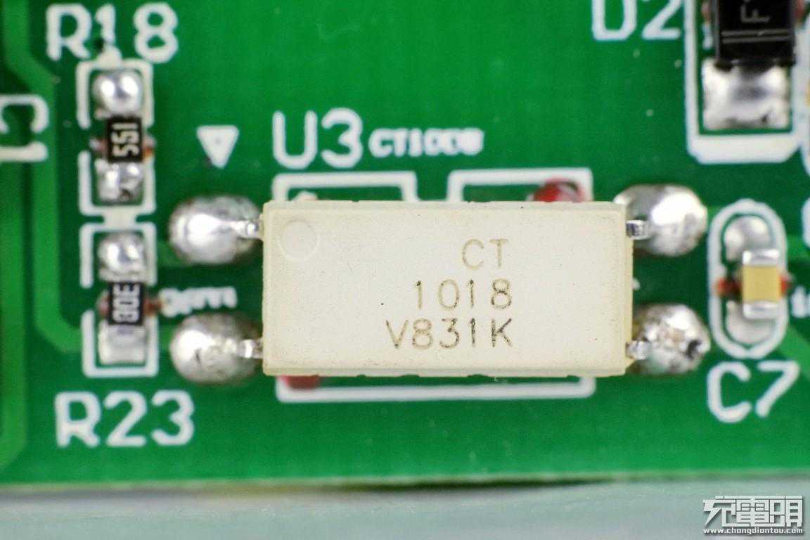 AC输入充电小板特写,输入输出采用插座连接,便于组装。