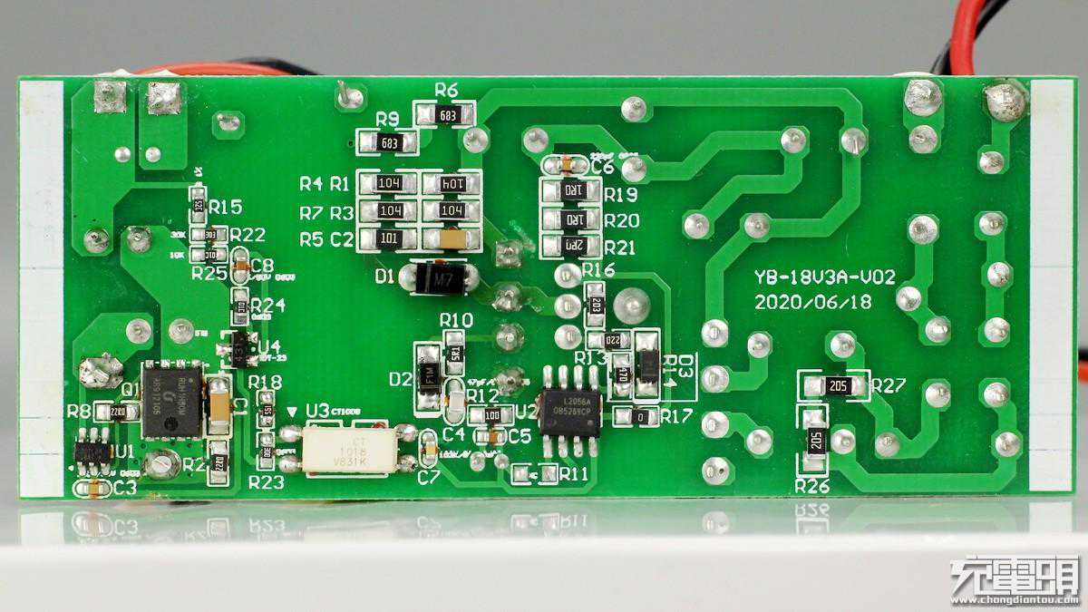 储能电源内置充电模块背面,电路板上印刷18V3A输出。