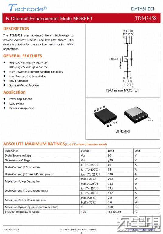 同步升降压采用四颗泰德TDM3458NMOS组成H桥,耐压30V,DFN5*6封装。