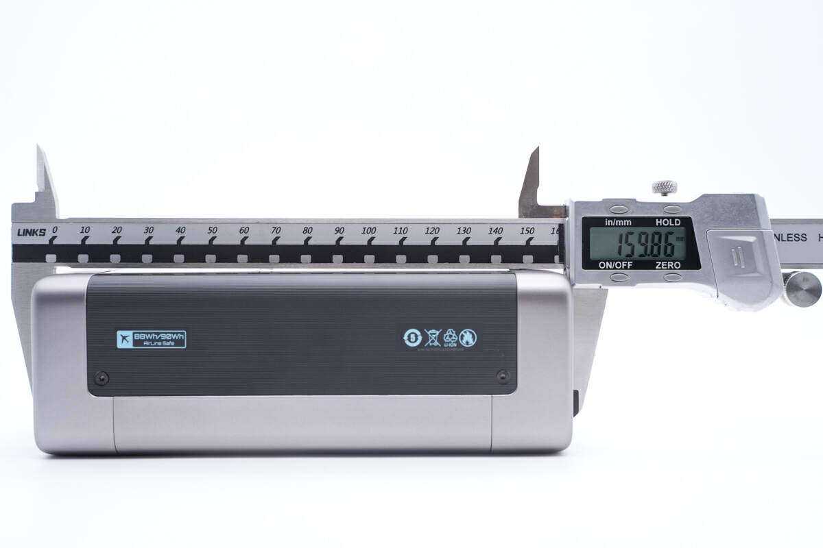 测得充电宝机身长度为159.86mm。