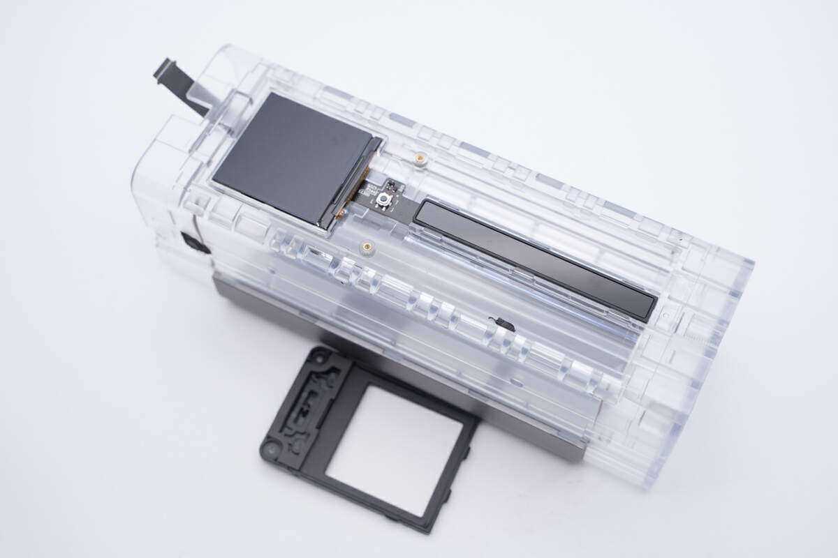 取下屏幕盖板,下方为屏幕和微动按键。