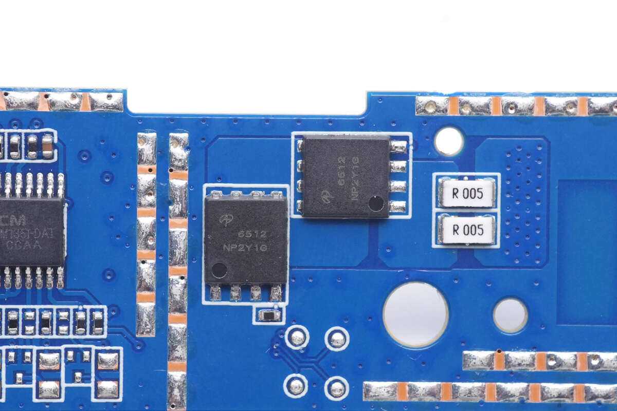 两颗5mΩ电阻并联用于电池组电流检测。