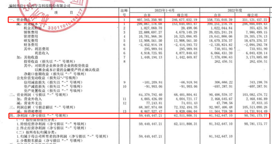 根据公司披露的审计报告,2022年和2023年上半年,母公司的收入为3.51亿元、2.47亿元,净利润为9078.12万元、6251.18万元。
