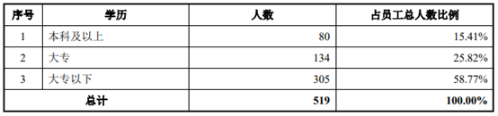 此外,公司员工的整体学历不高。