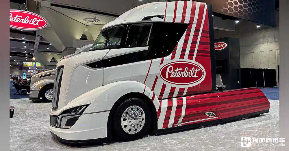 车辆基于彼得比尔特579车型改进而来,虽然核心差不多,但外观可是差了十万八千里。整个前保险杠都采用了类似跑车的设计,让车辆显得十分动感。前引擎盖上的立标依旧存在,并且车顶的五颗黄色灯光也被保留了下来。此外,车辆将传统的光学后视镜系统替换成了电子后视镜系统,进一步起到降低空阻的效果。
