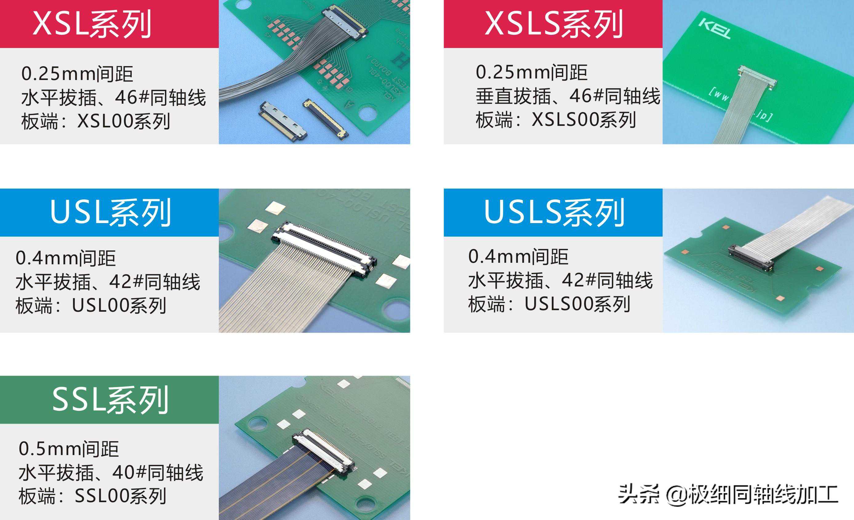 目前我司可以加工USL20和XSLS系列极细同轴线,另外3款USLS、XSL、SSL系列,如果有供应商有连接器正品或同等品,都可以联系我哦!