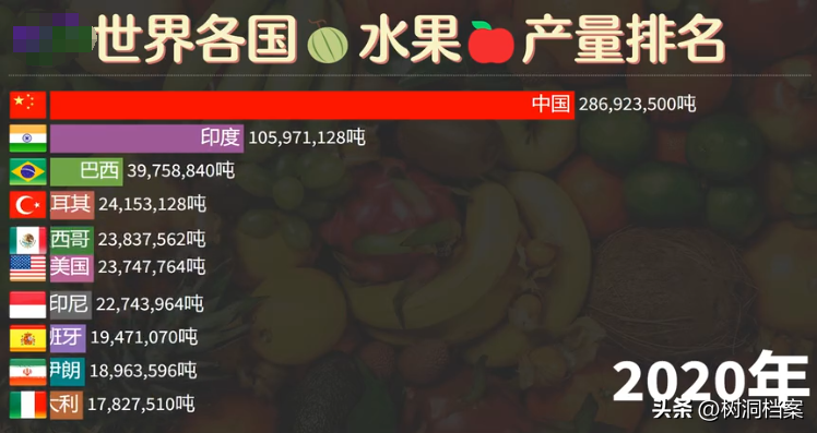 我国从1985年开始水果产量就稳居世界第一,直到2019年开始,就已经是美国的10倍。