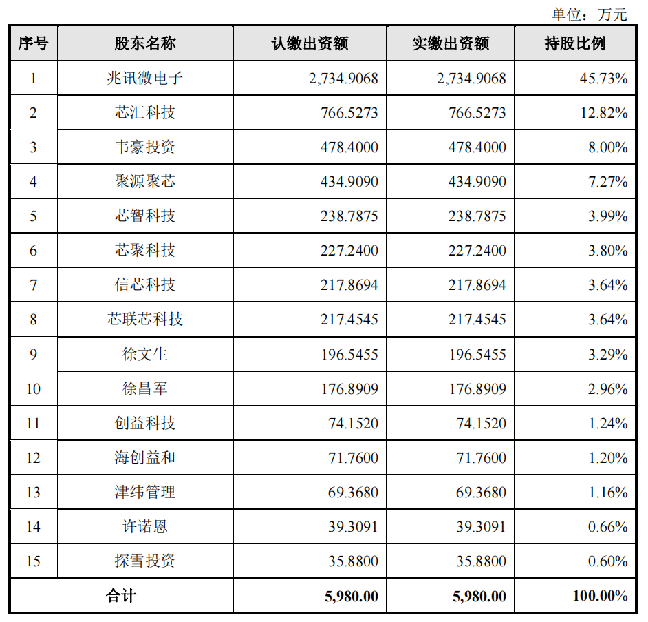 招股书显示,2021年12月15日,兆讯微电子分别与员工持股平台芯聚科技、芯智科技及信芯科技签订股权转让协议,约定兆讯微电子分别转让其所持公司478.40万股、238.79万股和217.87万股股份。同期公司股东百汇科技、兆讯微电子分别向韦豪投资转让217.45万股和260.95万股股份。