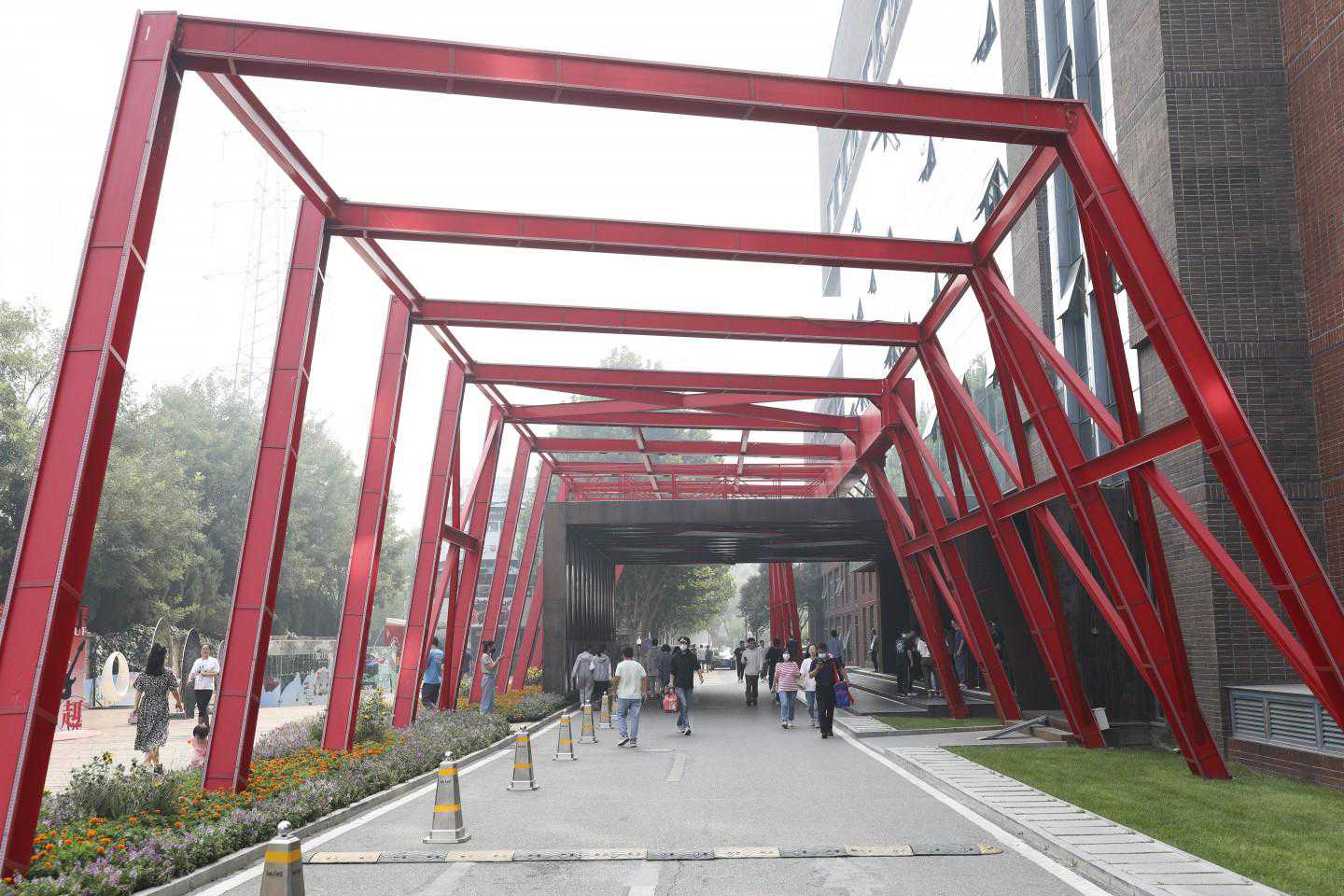 9月30日,中关村东升科技园,曾经的老厂房保留了一些钢架,变成了“新潮”的通道。新京报记者浦峰摄