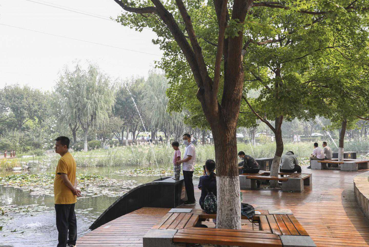 中关村东升科技园内有一个小公园,中午的时候,上班族可以在这里放松休息。新京报记者浦峰摄