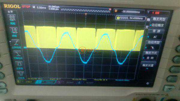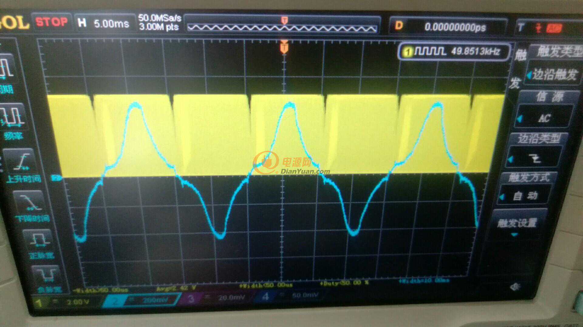 黄色是Vds波形,蓝色的是输入的电流波形。