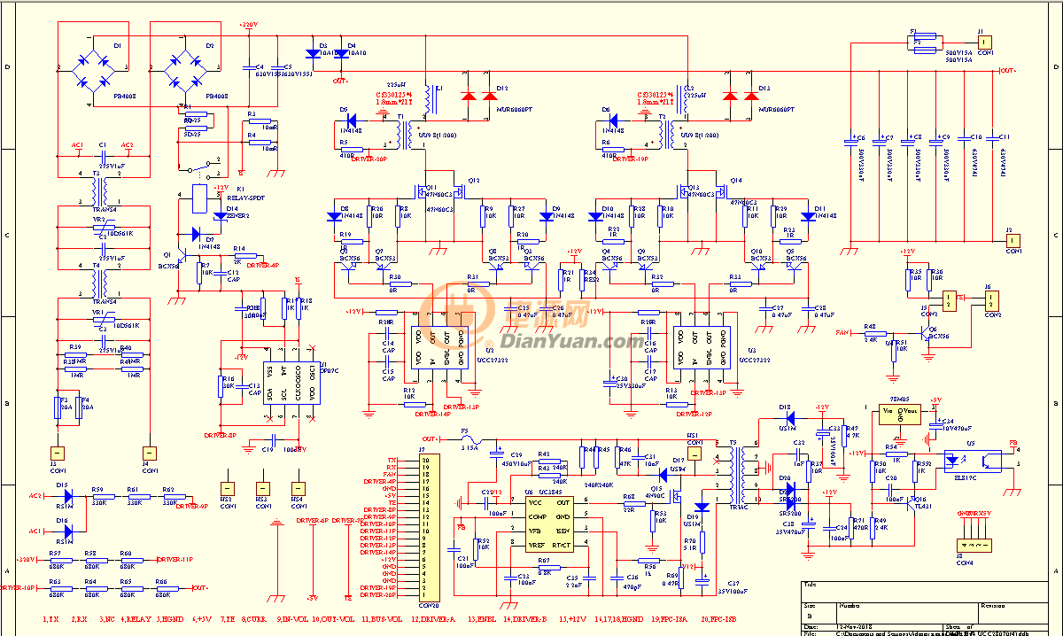上面用到了辅助电源,3842做的反激电源,所以标题上挂了个反激。