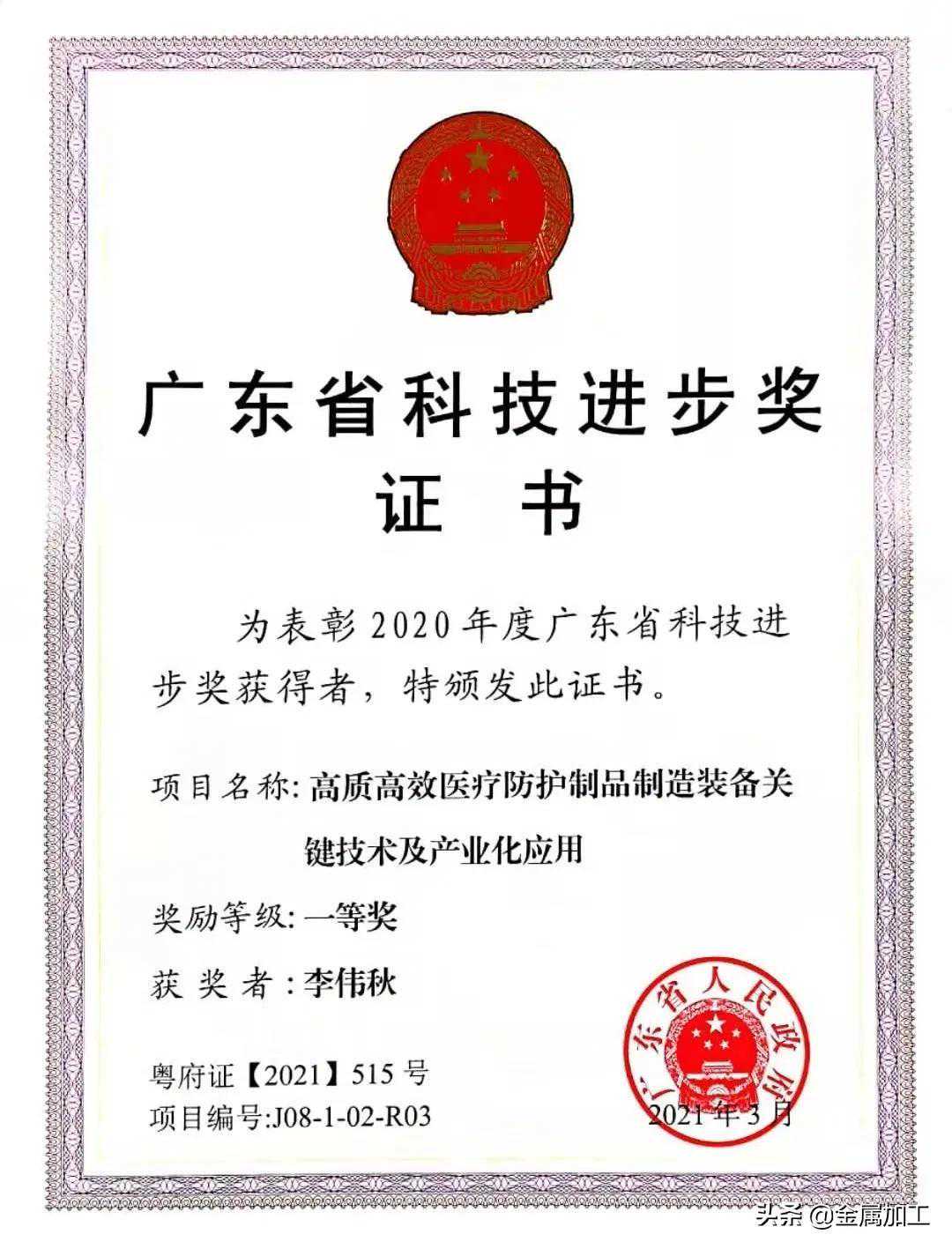 2021年5月20日上午,广东省科技创新大会在广州召开,表彰2020年度优秀科技成果和科技工作者,会上颁发了2020年度广东省科学技术奖,其中中国工程院院士钟南山获得了2020年度广东省科技进步奖特等奖。由广东工业大学、汇专科技集团股份有限公司等单位共同完成的“高质高效医疗防护制品制造装备关键技术及产业化应用”项目,荣获2020年度广东科技进步奖一等奖。