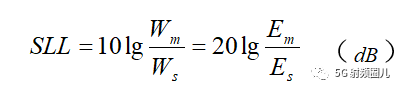 副瓣最大值与主瓣最大值之比,一般用分贝表示,即: