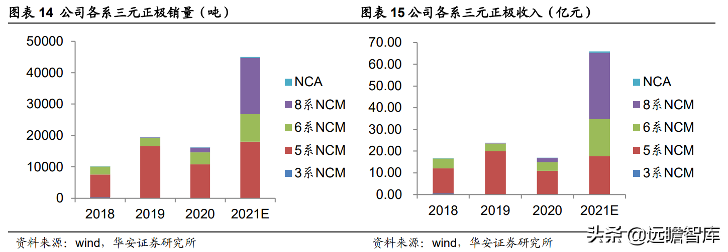 2018年公司三元正极以5系、6系为主,8系NCM尚未出量,销售吨,对应收入仅仅有0.24亿元。