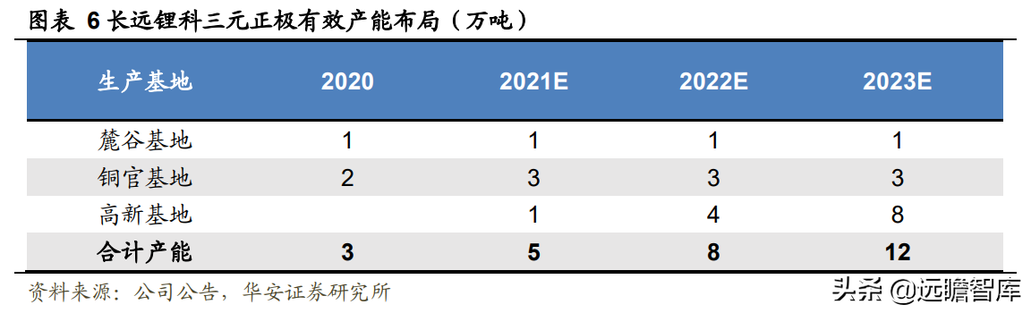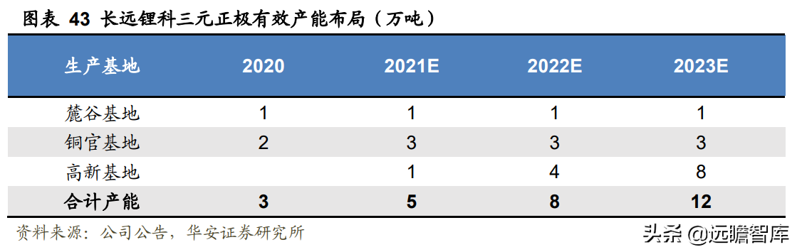 2020年公司“2+1”项目全部达产,三元正极全部产能约3万吨(麓谷基地1万吨+铜官基地2万吨)。