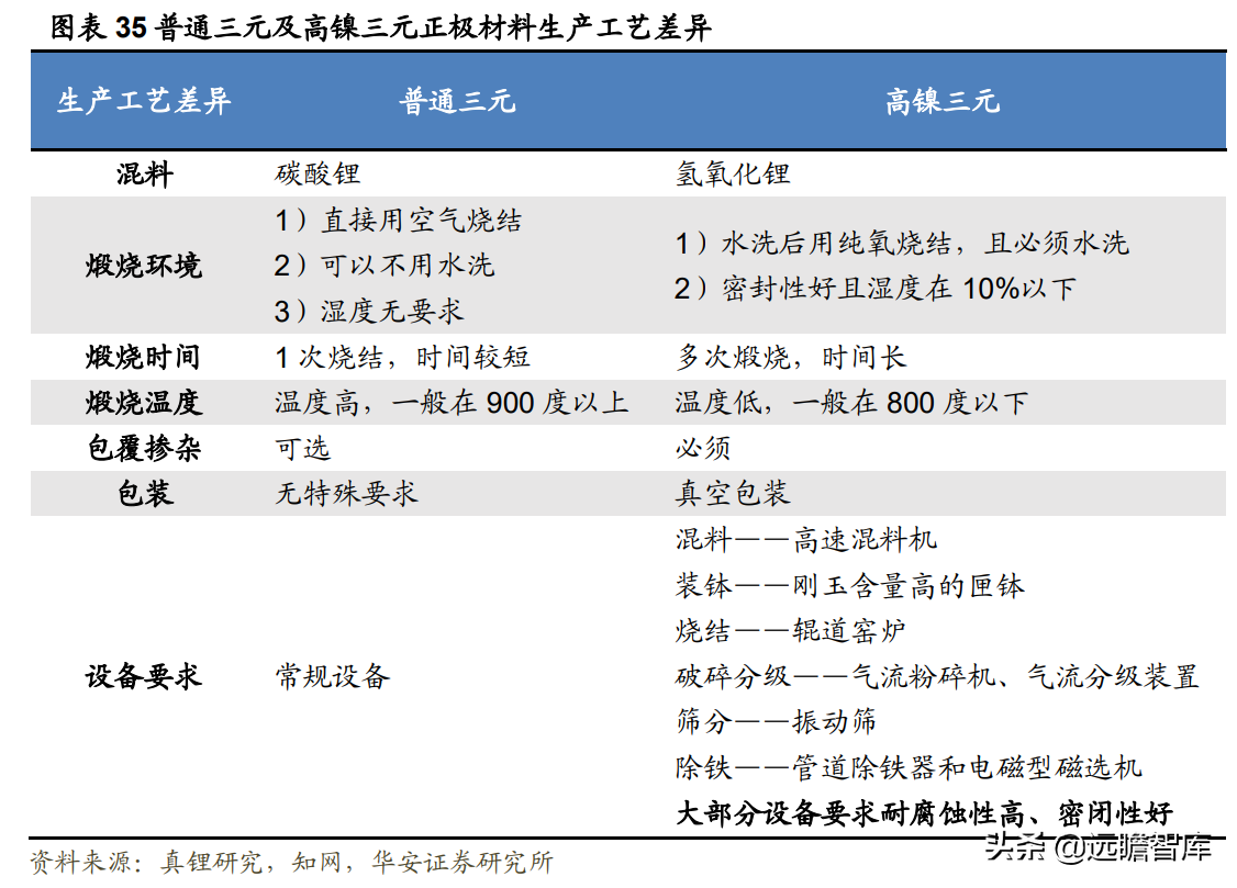 用料方面,高镍三元使用熔点更低的氢氧化锂作为原材料。