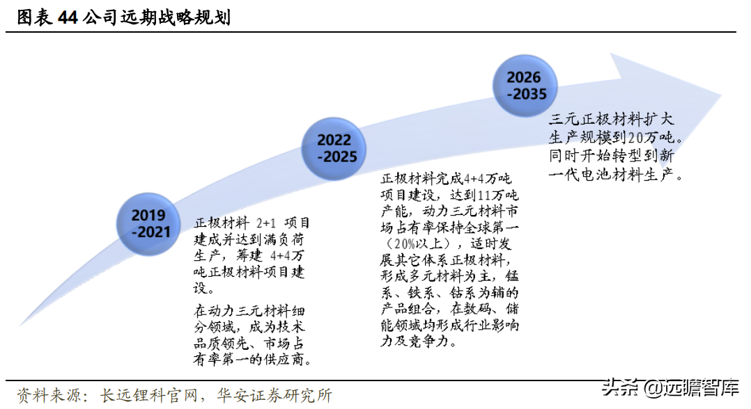公司将紧跟市场需求,持续深耕三元正极,重点发力高镍产品,加快产能建设。正极材料远期产能规划超过20万吨,目标市占率全球第一。目前已经圆满完成2019-2021规划,正朝着新目标前进。