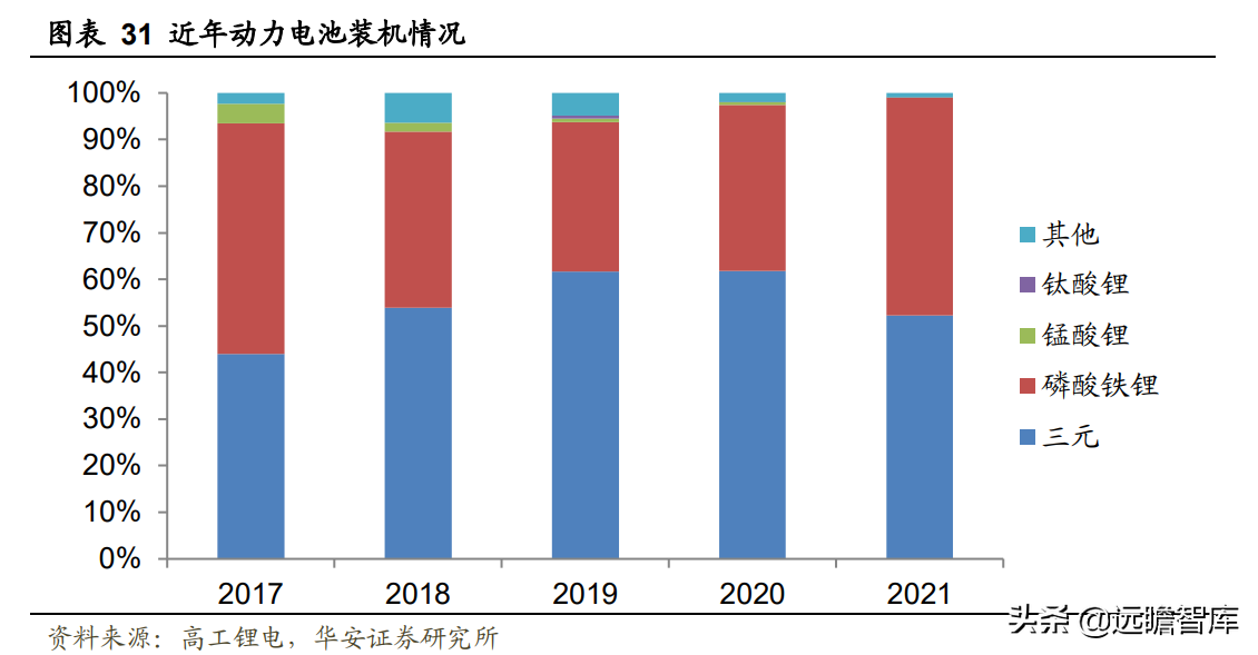 2021年,国内动力电池装机139.98Gwh,其中磷酸铁锂装机65.37Gwh,占比提升至46.7%,基本上占据半壁江山。