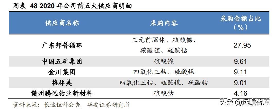 由于跟宁德时代深厚的合作关系,公司对其下属企业湖南邦普的采购金额较高,采购占比分别为37.30%、53.09%、27.95%。