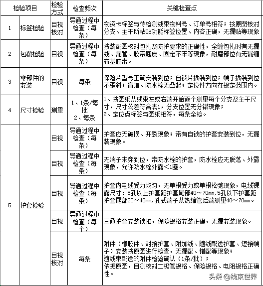 1、按《线束外观检验目视化标准》中要求进行逐项检查、确认;