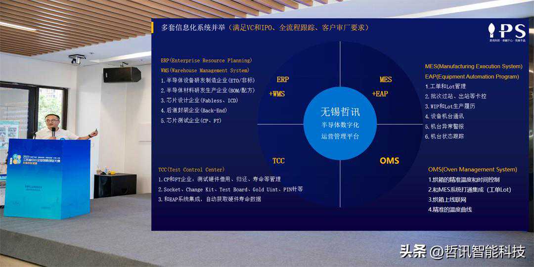 项目负责人崔新华为无锡哲讯智能科技有限公司总经理,在会上指出半导体行业是电子信息产业的核心,是中国战略性新兴产业。半导体行业主要包含电路设计、晶圆制和封装测试三个部分。其中封测领域是集成电路行业的重要组成部分,也是产业链的最后一个节,是指将通过测试的晶圆按照产品型号及功能需求加工得到独立芯片的过程。