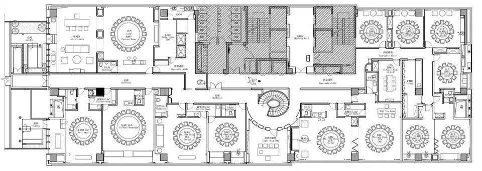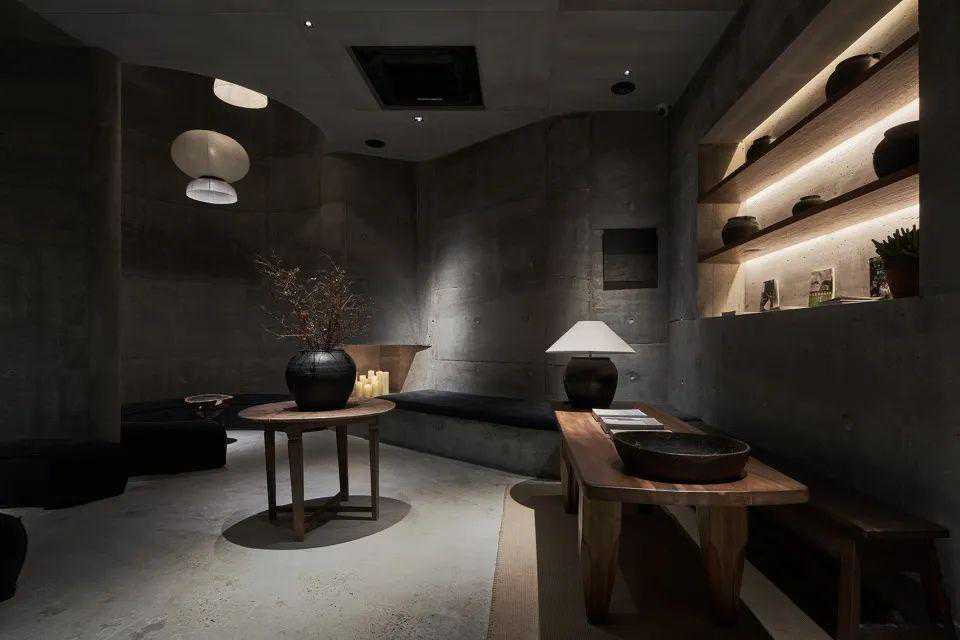 包厢区域:包含用餐区、水吧、品茶区及休闲区,采用木质和混凝土的搭配柔化空间,朴实无华的软装搭配为整个空间创造了最原始的体验。强调采光、尺度、私密感以及光影效果的营造,提供适合沉思和私人用餐的宁静而温馨的室内空间。尽量让不同的区域产生关联并保持各自独立。通过不同的光线、视觉和空间整合,诠释自然质朴的设计理念。