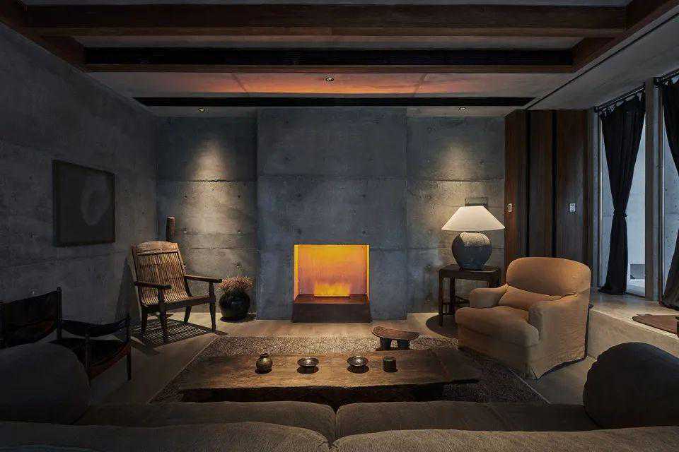 主要使用材料:实木、清水混凝土、定制家具及中古家具