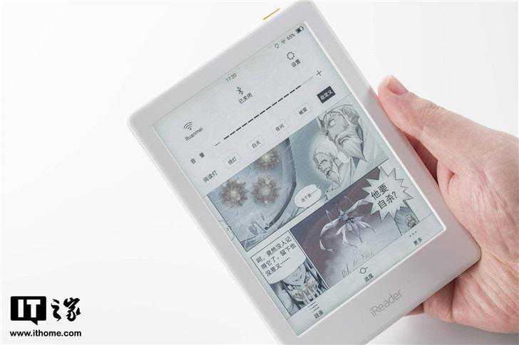 那我们都知道,电子墨水屏在刷新页面的时候,通常有全局刷新和局部刷新两种方式,全局刷新就是对整个屏幕的显示区域都进行刷新,屏幕会有一个由白转黑再恢复白的过程,通俗点说就是闪屏,而局部刷新只刷新显示的文字内容,其它的地方不刷新,屏幕不会闪一下黑色,这样翻页的速度会加快不少,阅读效率和体验也有所提升。一般来说,如果以局部刷新的方式刷新带有图片或图形元素的页面,屏幕就会出现残影,这个问题让很多用户不爽。iReaderC6内置了智能消除残影技术,阅读文字内容观感好了很多。但我们手里的这台工程版,对漫画这种全图片的内容进行局部刷新还是会有些许的残影。针对这一问题,掌阅向IT之家表示,“智能残影清除”功能会在后续量产机的版本上持续优化。